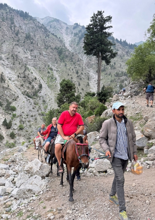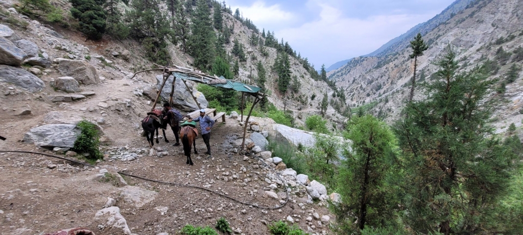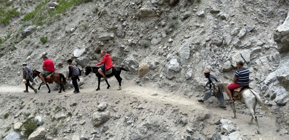 Hamar kiderült számunkra a csoportosulás oka; teherhordók és lovas vezetők vártak ránk, mint lehetséges kuncsaftokra. A népszerű túraútvonalak, természeti látványosságok mentén fekvő falvakban hosszú évtizedek alatt túravezetők generációi nőttek fel, s tulajdonképpen ez a fajta tevékenység az itt élő családok megélhetésének egyik forrásává, s elsősorban a férfilakosság hivatásává vált. Ugyanez ismerhető fel más szolgáltatásoknál, így e cikk előzményében – https://bebte.hu/elmenyautozas-pakisztanban-oriashegysegek-kozott/ – említett terepjáróztatás kapcsán, vagy akár más helyszíneken, például az Attabad-tavon felkínált hajóztatásnál is.
